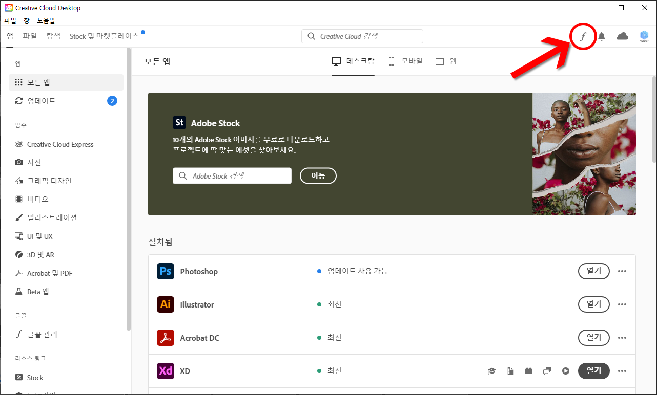 4. 활성글꼴이 없어진것을 확인하면 포토샵을 재부팅 해줍니다.